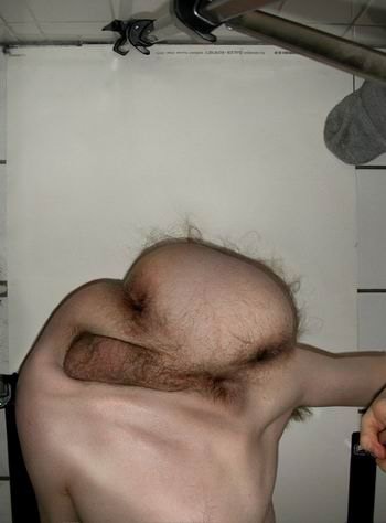 voilà exactement le genre d'image que je n'ai pas envie de regarder: un mec avec deux trous du cul et une aisselle à la place de la tête. En plus c'est surement un fake. |