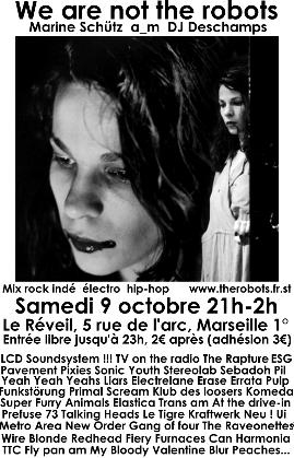 PostPosted: Sun Sep 26, 2004 3:55 pm    Post subject: We are not the robots, samedi 9 octobre, Marseille Reply with quote